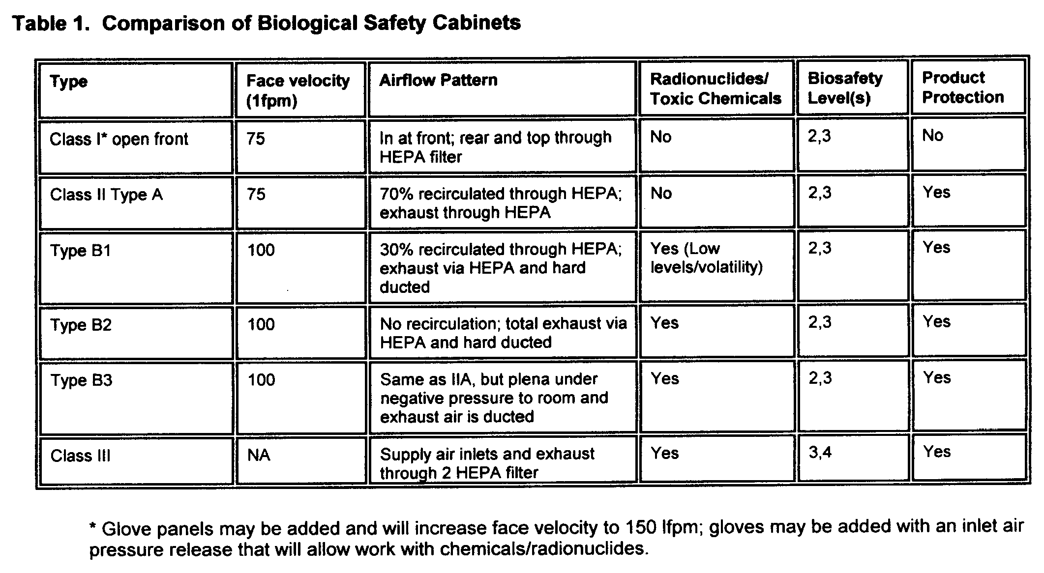 higher grade cabinets have a face velocity of at least 100 lfpm. Class IIB CabinetsType B1 cabinets have 30% recirculation
