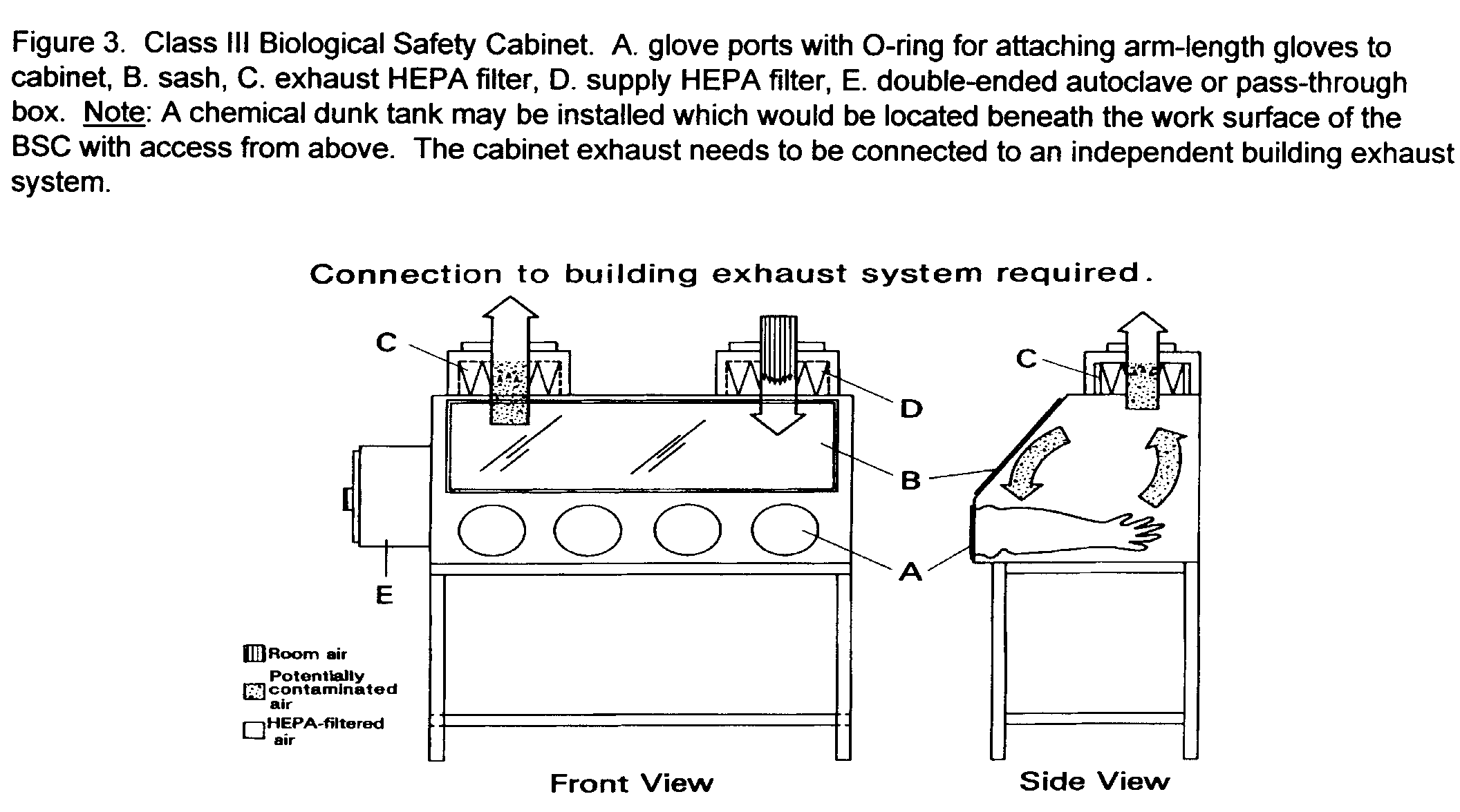 organisms in BSL-3 or BSL-4. Since Class III cabinets must be connected to a